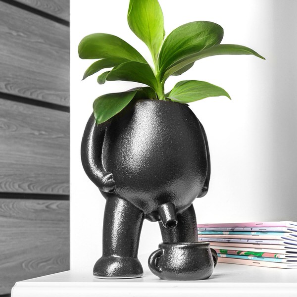 Tento keramický květináč rozhodně nepatří mezi nudné doplňky. Na první pohled pobaví, ale zároveň nabídne i praktické využití pro sukulenty, kaktusy či menší pokojové rostliny. Díky promyšlenému odtoku přebytečné vody působí nápaditě, udrží rostlinku v lepší kondici a navíc rozesměje každou návštěvu. Je to originální doplněk do bytu i kanceláře a skvělý dárek pro někoho, kdo má rád rostliny, humor a neobvyklé dekorace.Hlavní výhodyVtipný design květináče okamžitě přitáhne pozornost a oživí poličku i pracovní stůl.Praktický odtok vody pomáhá odvádět přebytečnou vlhkost a chrání kořeny rostliny.Keramická miska v balení zachytí odtékající vodu a pomůže udržet povrch čistý.Kompaktní rozměry jsou ideální pro drobné sukulenty, kaktusy nebo malé pokojové rostliny.Pro koho je tento květináč ideální?Pro milovníky sukulentů a kaktusů, kteří chtějí pěstovat rostliny s nápadem.Pro lidi, kteří mají rádi vtipné dekorace do bytu, kanceláře či na pracovní stůl.Jako dárek pro pěstitele, kamaráda nebo kolegu se smyslem pro humor.Specifikace produktuParametrHodnotaMateriálKvalitní keramikaBarvaMatná černáVýška postavičky13,8 cmŠířka postavičky12 cmPrůměr otvoru7,5 cmHmotnost balení530 gBezpečnostní pokynyKvětináč omývejte opatrně vlažnou vodou a jemným hadříkem, abyste nepoškodili matný povrch.Při zalévání dbejte na to, aby se miska nepřeplnila a voda nepřetekla na podložku či nábytek.Produkt je vyroben z keramiky, proto s ním manipulujte opatrně, aby nedošlo k jeho rozbití.Často kladené otázky (FAQ)Jaké rostliny se do květináče hodí nejvíce?Nejlépe se hodí pro sukulenty, kaktusy a menší pokojové rostliny, které nepotřebují mnoho prostoru ani nadměrnou zálivku. Skvěle v něm vyniknou i vizuálně.Je tento keramický květináč vhodný i jako dárek?Ano, jde o velmi originální dárek pro milovníky rostlin, humoru a neobvyklých doplňků. Zaujme vzhledem a zároveň má praktické využití v interiéru.Je materiál dostatečně pevný a odolný?Ano. Květináč je vyroben z odolné keramiky a při správném zacházení vám bude dělat radost dlouhé roky bez ztráty barevnosti či kvality.Zásilkovna – výdejní místo a Z-BOX: 69 KčPPL kurýr: 99 KčPPL ParcelShop a Parcelbox: 89 KčDobírka: + 39 KčPři objednávce nad 1500 Kč je doprava zdarma.